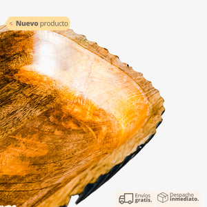 El color predominante de la bandeja es un hermoso tono de azul suave y relajante. Este color aporta un toque de frescura y serenidad a cualquier espacio en el que se coloque. Además, el acabado de la bandeja permite que la textura natural de la madera se vea sutilmente a través del color, lo que le da un aspecto rústico y auténtico.