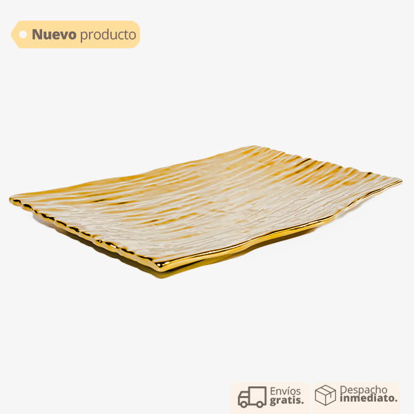 Bandeja encerámica. Bandeja dorada. Bandeja decorativa, diseño moderno y elegante.. Bandeja rectangular para mesas. Bandeja de decoración. Bandeja decorativa.