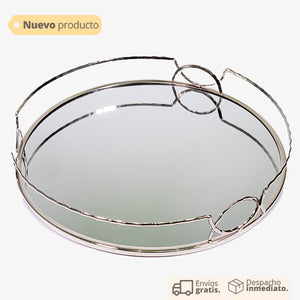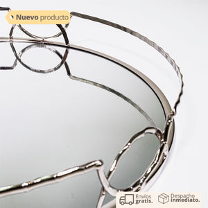 Bandeja ideal para usar en mesas auxiliares para colocar tus velas de olor, también puedes usarlas en baño como bandeja para toallas de mano. Por su diseño es ideal para tus ambientes elegantes y sobrios, solo en Vertihome, con anillos dorados y espejo incluido.
