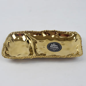 Bandeja dorada, cuadrada. Úsala para complementar la decoración de las mesas o el comedor.