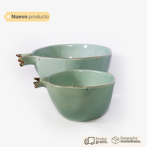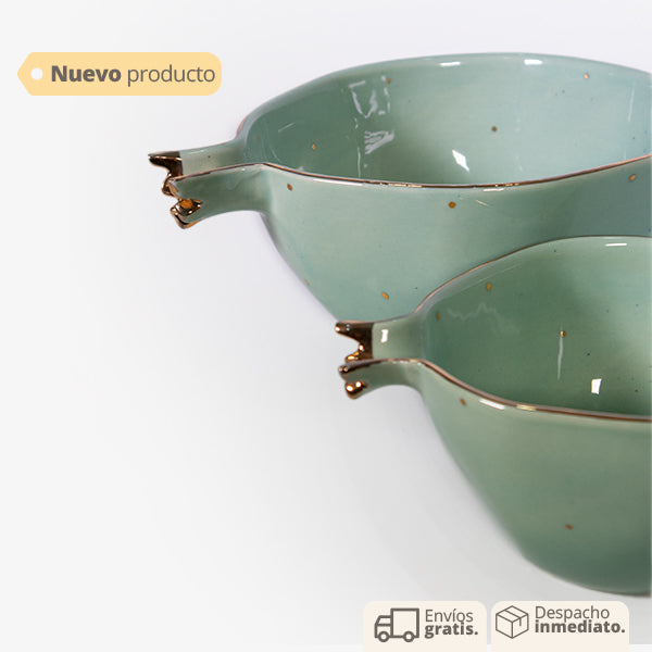 Este set de dos bowls en color verde manzana con detalles dorados es la combinación perfecta de frescura y elegancia. Su vibrante tonalidad verde aporta un toque de alegría a la mesa, mientras que los delicados bordes dorados añaden un acento sofisticado que realza su diseño. Ideales para servir aperitivos, postres o simplemente para decorar, estos bowls se adaptan tanto a ocasiones especiales como al uso diario. Perfectos para quienes buscan un toque moderno y refinado en su vajilla, este set es un accesorio versátil y encantador para cualquier mesa.
