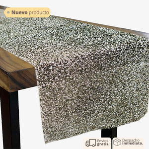 Camino de mesa gris brillante. Camino de mesa plateado. Camino para centro de mesa gris. Camino de mesa, piedreria, elegante y sencillo. Decoración para mesa color gris.