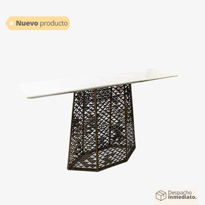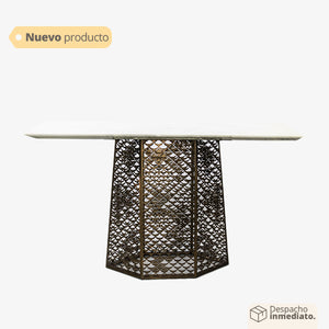 Agrega un toque de elegancia y modernidad a tu espacio con nuestra impresionante consola de estilo industrial. La base en color cobre y el diseño lineal le dan un aspecto robusto y sofisticado, mientras que la cubierta en mármol añade un toque de lujo y distinción.