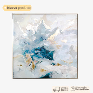 Este cuadro presenta un diseño abstracto en tonos azules, rosas y grises, con pinceladas audaces y dinámicas que crean una sensación de movimiento y energía en la obra. Su estilo contemporáneo lo hace adecuado para cualquier tipo de decoración moderna.