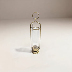 Cuerpo de Vidrio Texturizado: El cilindro que protege la vela está hecho de vidrio transparente con un diseño acanalado o estriado. Esta textura no solo es decorativa, sino que también ayuda a difuminar la luz, creando un resplandor suave y envolvente.