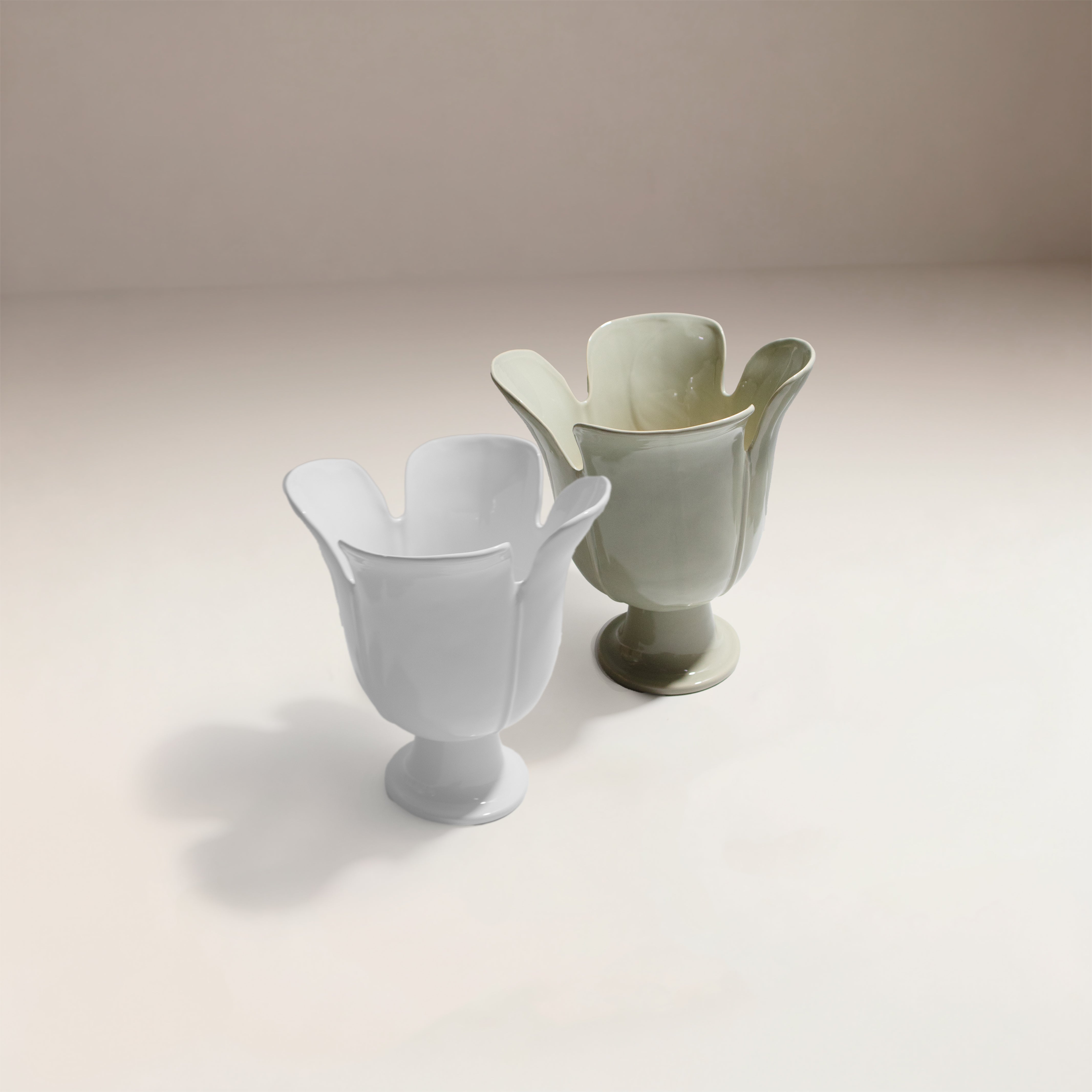 Su acabado brillante y su base elevada lo convierten en una pieza versátil, ideal tanto para exhibir arreglos florales frescos como para lucirse como un objeto decorativo independiente en consolas, mesas de centro o estanterías.