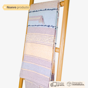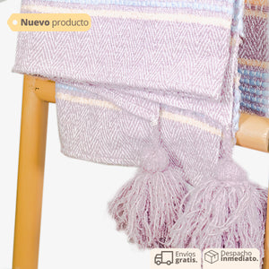 Manta en tejido de punto de varios colores. Manta para sofás y camas. Manta decorativa. Cobija para decorar sofás y pie de cama. Cobija con borlas decorativas.