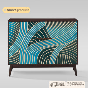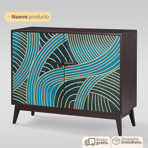 Este bifé combina estilo, funcionalidad y durabilidad en una sola pieza, convirtiéndolo en una adición imprescindible para tu hogar o negocio. Sus detalles en dorado y azul añaden un toque distintivo que seguramente captará miradas y se convertirá en un punto focal en cualquier ambiente.