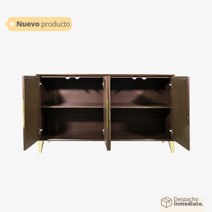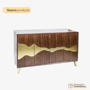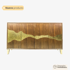 El Mueble es una obra maestra de diseño moderno que combina la elegancia del color dorado y la calidez del color café con cautivadores diseños de ondas, creando una pieza única y sofisticada para tu hogar u oficina.