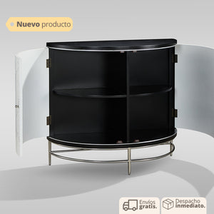 El bifé cuenta con compartimentos y estantes internos que ofrecen amplio espacio para organizar y guardar objetos diversos, como libros, documentos, decoraciones y más. Ideal para mantener tu espacio ordenado y libre de desorden, al mismo tiempo que añade un toque de estilo a la habitación.