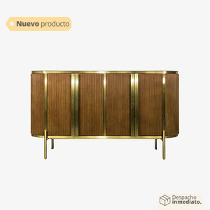 Embellece tu espaciocon nuestro magnífico bifé de color madera oak café, cuidadosamente diseñado con detalles dorados y una lujosa cubierta de mármol. Este mueble combina a la perfección funcionalidad y elegancia para satisfacer tus necesidades de almacenamiento y estilo.