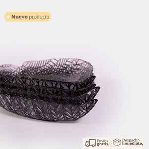 Este elegante set de 4 platos en forma de hoja color negro es la adición perfecta para cualquier mesa, ideal para servir postres o como elementos decorativos. Su diseño distintivo, que imita la forma de hojas, aporta un toque artístico y moderno, convirtiéndolos en una excelente opción para cenas informales o eventos especiales.