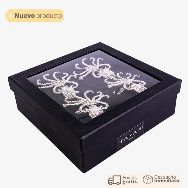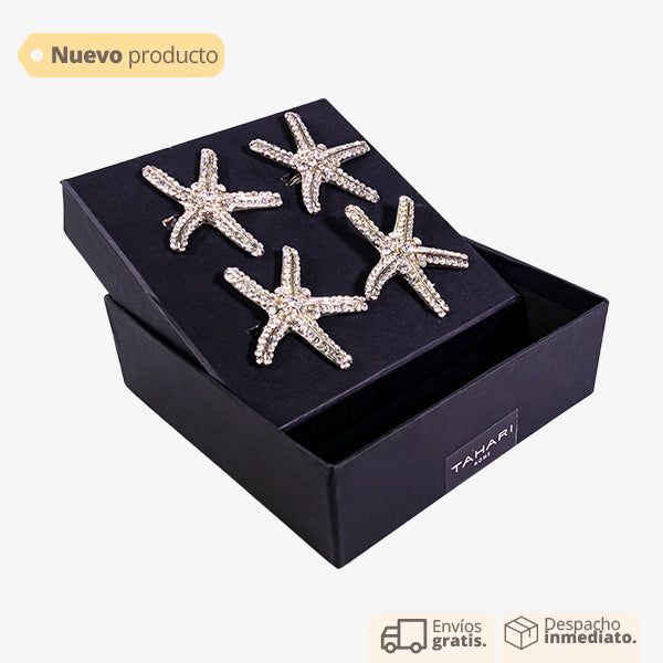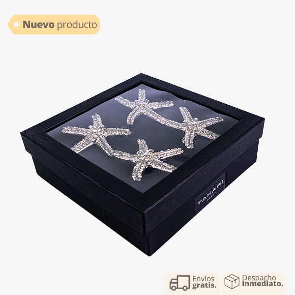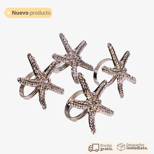 Servilleteros color plateado, vienen en juego de 4 piezas, hecho en metal muy resistente, de ideales para casas de ambientes tropicales o en playa. Sin perder elegancia, brillo y estilo, por su diseño.
