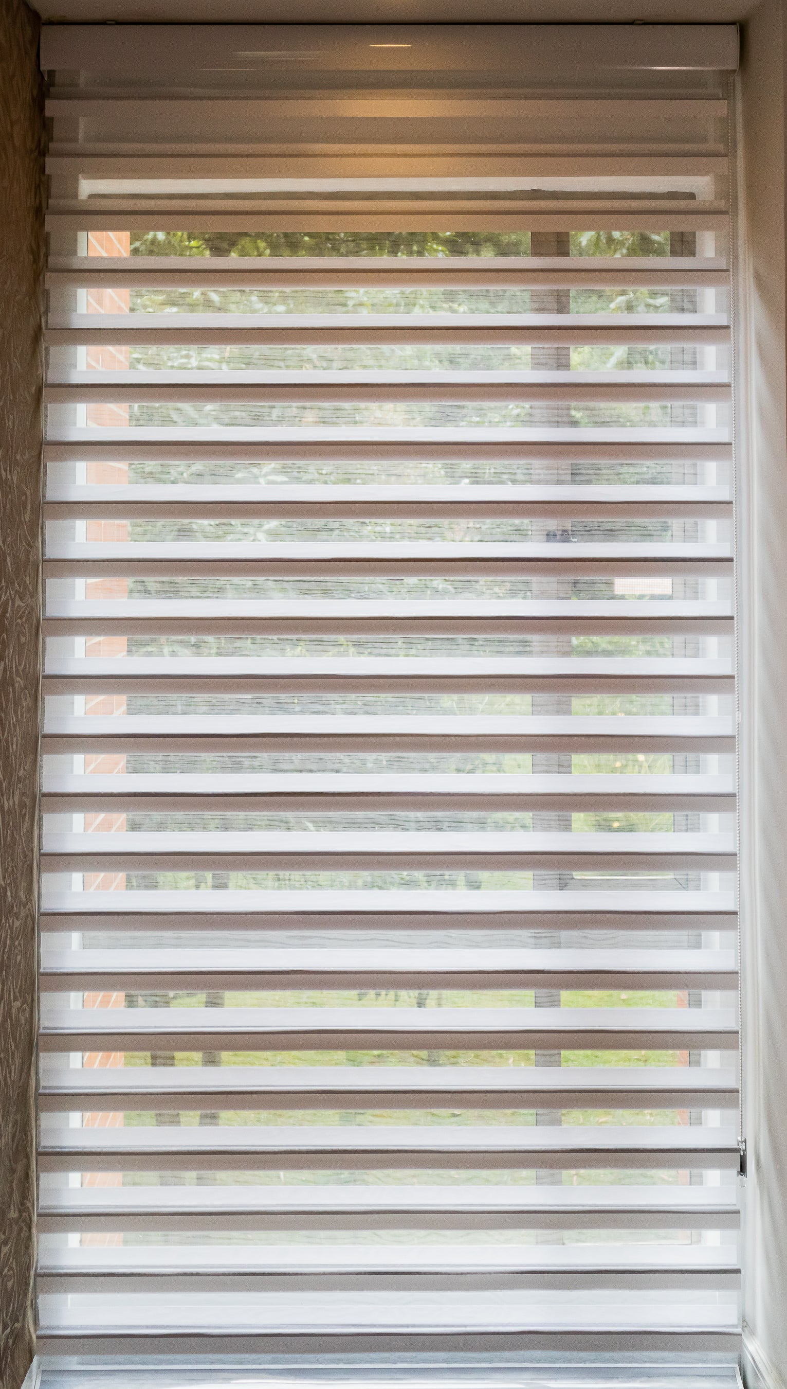 Nuestra cortina Shangrila dos pulgadas blackout permite deslizar y traslapar sus franjas para que puedas graduar el nivel de iluminación y privacidad que quieres en el ambiente. La tela otorga una protección a tus muebles de los rayos UV y esta diseñada para darle un toque moderno, elegante y personal.