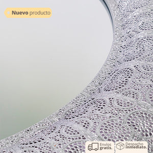Espejo gris con marco en detalle de flores. Los espejos son una pieza fundamental en la decoración de tu hogar. Este espejo es ideal para recibidores, o algún espacio pequeño que quieras decorar sin poner muchas cosas. Su tamaño y diseño lo hacen ideal para casas con estilo moderno y elegante.