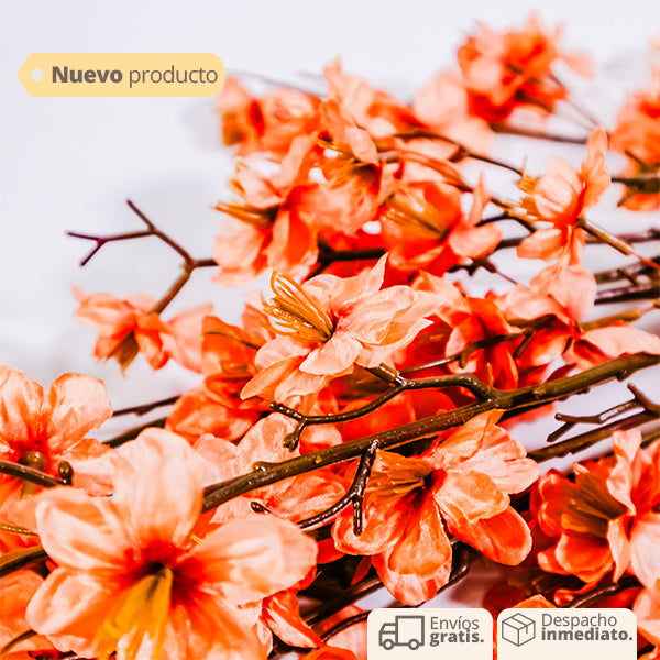 Cada rama está adornada con flores rosadas de aspecto realista que añaden un toque de suavidad y romance a tu hogar. El color rosado es símbolo de amor y alegría, lo que hace que estas flores sean ideales para crear un ambiente cálido y acogedor.