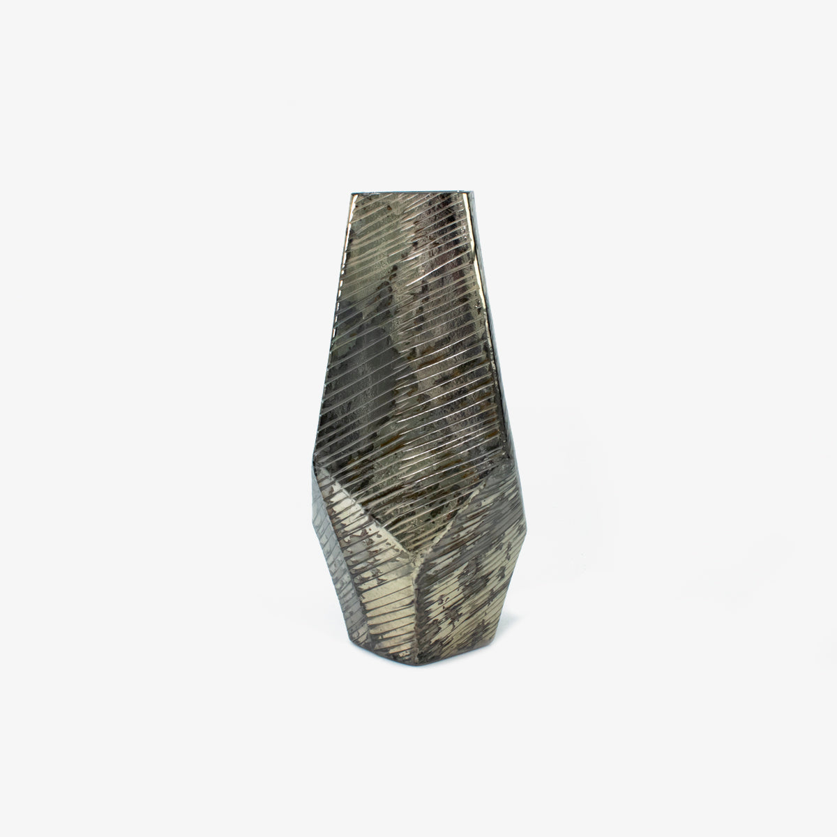 Jarrón decorativo para el hogar, color gris/dorado, esta hecho de vidrio de alta calidad, este hermoso jarrón le dará armonía y lucidez a tus espacio y a su vez puedes jugar con los demás elementos de tu hogar de modo que resalten tus paredes o muebles. Es ideal para incorporar flores o como un elemento decorativo.