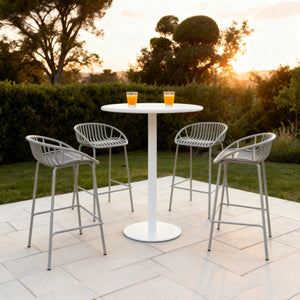 Esta silla alta para barra de bar es ideal para espacios exteriores modernos y funcionales. Fabricada en polipropileno de alta resistencia, está diseñada para soportar el uso continuo en ambientes al aire libre sin perder estabilidad ni estilo.